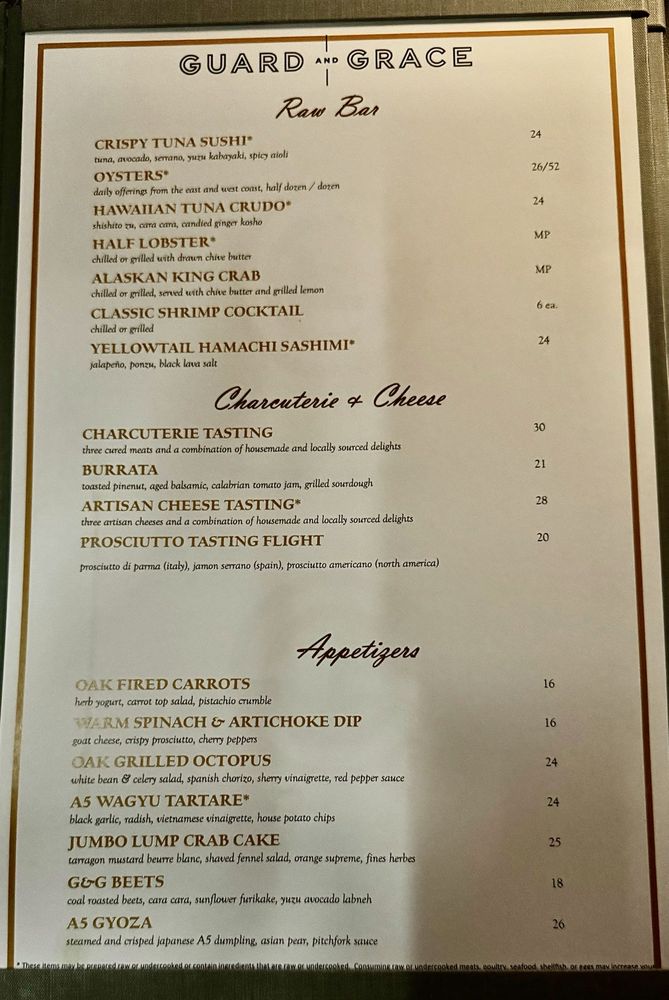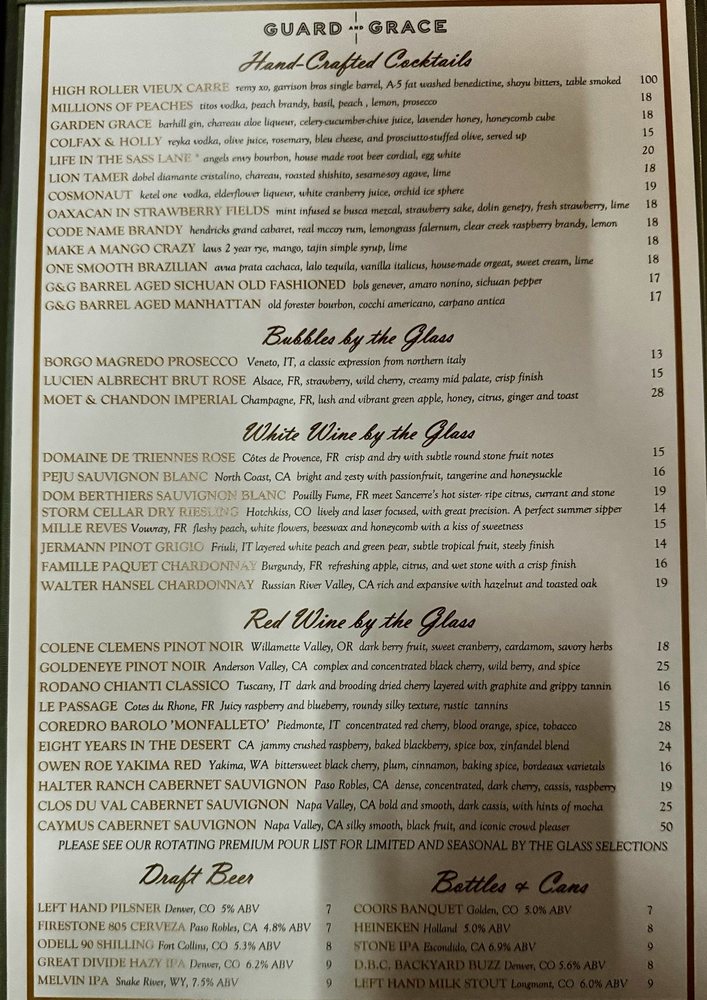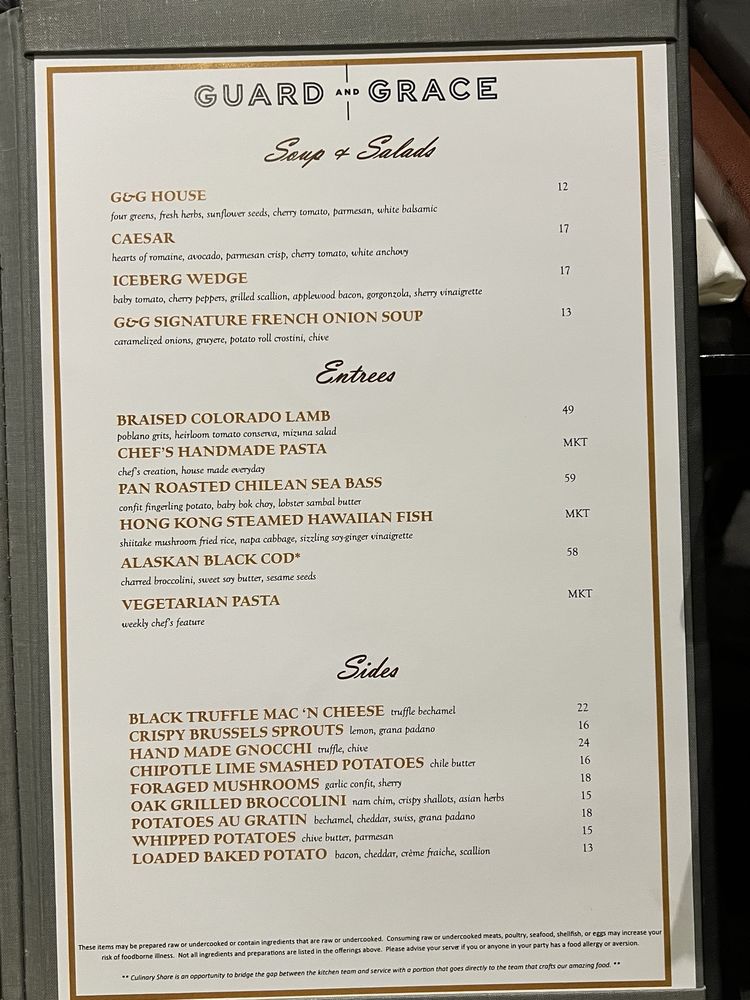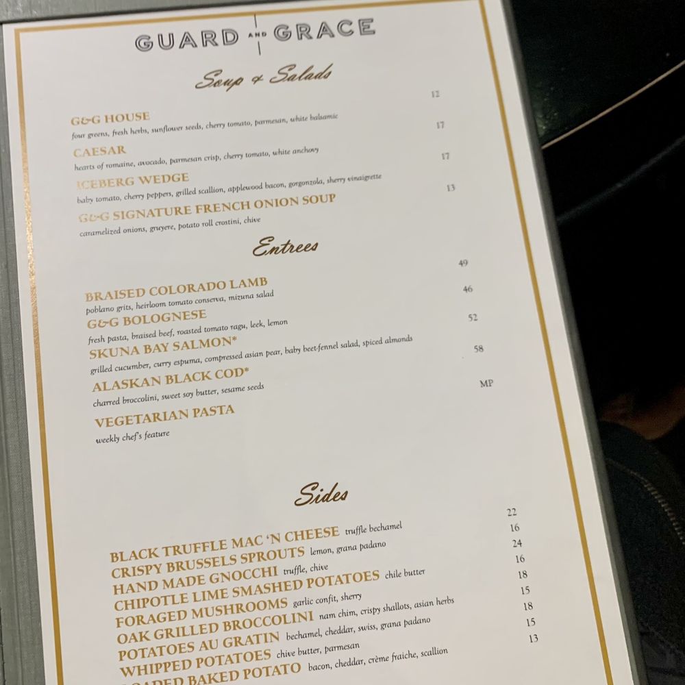 Guard and Grace Modern Steakhouse offers a trendy and upscale dining experience in Denver, CO. With a variety of options including keto, vegan, and vegetarian choices, this restaurant caters to all dietary preferences. The menu features classic steakhouse fare with a modern twist, and the standout dishes like the black cod and crispy tuna roll are must-tries. The atmosphere is both classy and comfortable, perfect for a business meal or special occasion. The attentive staff adds to the exceptional service, making every guest feel welcome. From the perfectly cooked steaks to the delectable sides like truffle Mac and cheese, Guard and Grace impresses with each dish. Whether you're celebrating a birthday or just looking for a memorable dining experience, Guard and Grace Modern Steakhouse is sure to exceed your expectations.